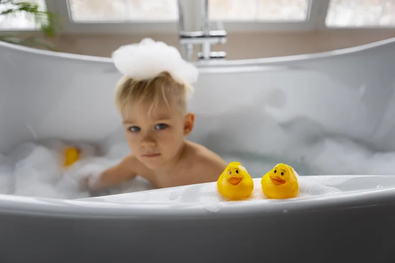 Когда вода уходит в слив, начинается эффект водоворота. Это способно ввести в лёгкий транс даже взрослого человека. Также ребёнок может опасаться и того, что его утянет в отверстие вместе с водой. Попробуйте положить на сливное отверстие резиновую игрушку, чтобы малыш увидел, что с игрушкой ничего не происходит, она не исчезает в сливе, а значит, и ему нечего бояться.