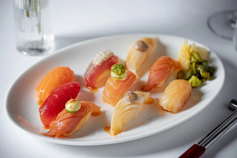 Суши без риса на основе из белой спаржи и цветной капусты Источник фото: 123rf.com