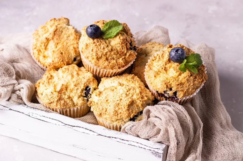 - Полученное тесто разложить по порционным формочкам, дополняя ягодами. Выпекание овсяных кексов производится при 170-градусной температуре.