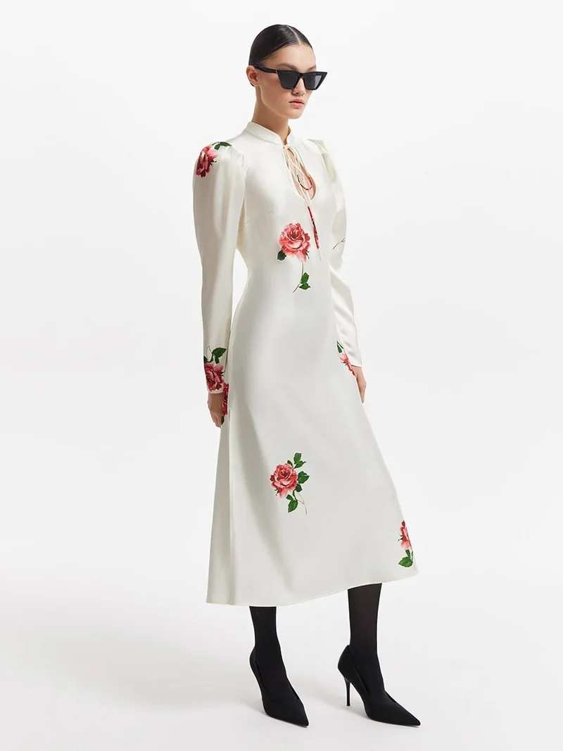 Романтичное платье с розами будет смотреться уместно как на выпускном, так и в театре. Отличный выбор для тех, кто не хочет покупать платье на один раз.